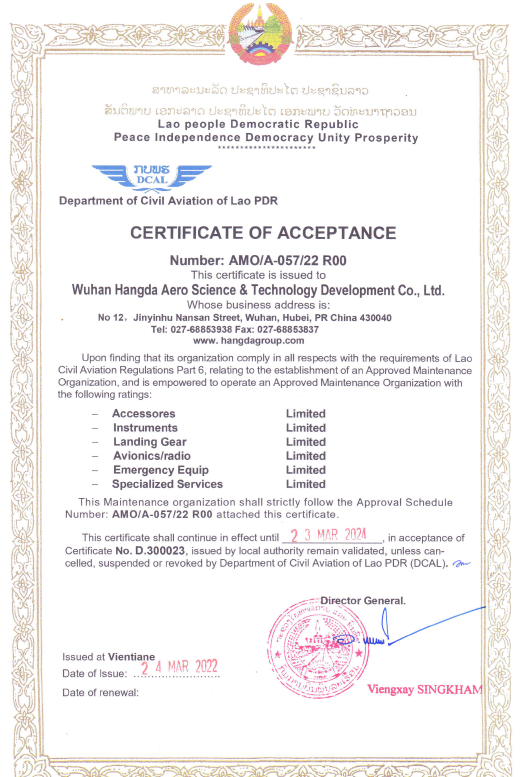我們擁有CAAC、FAA、EASA以及多國和地區的維修資格證書